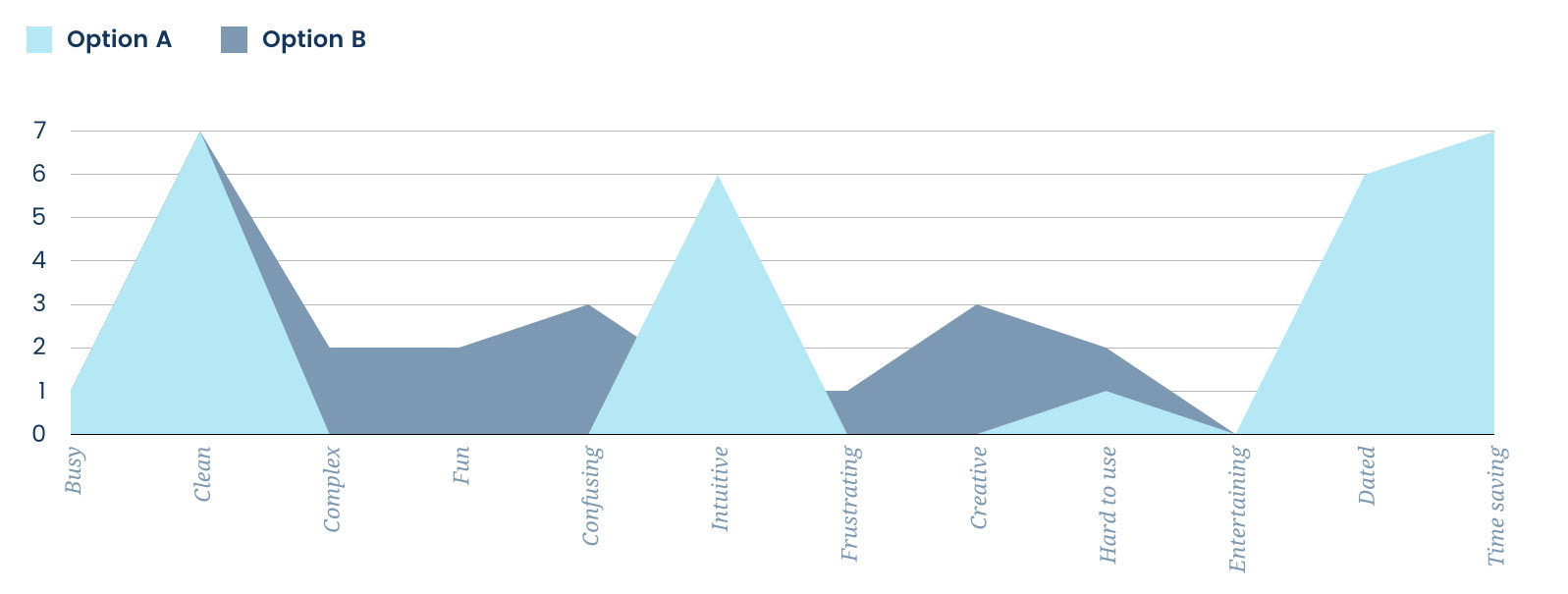 We gave users a set of 12 keywords where 6 of them were positive and 6 of them were negative. We asked them to associate these keywords with each of the interfaces.
